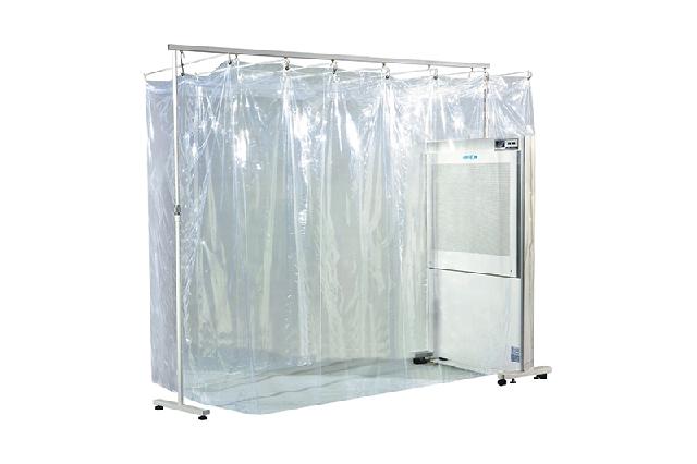 后进前出型洁净屏外加透明围帘形成水平层流床,为免疫力低下的病人提供局部洁净无菌的环境。
