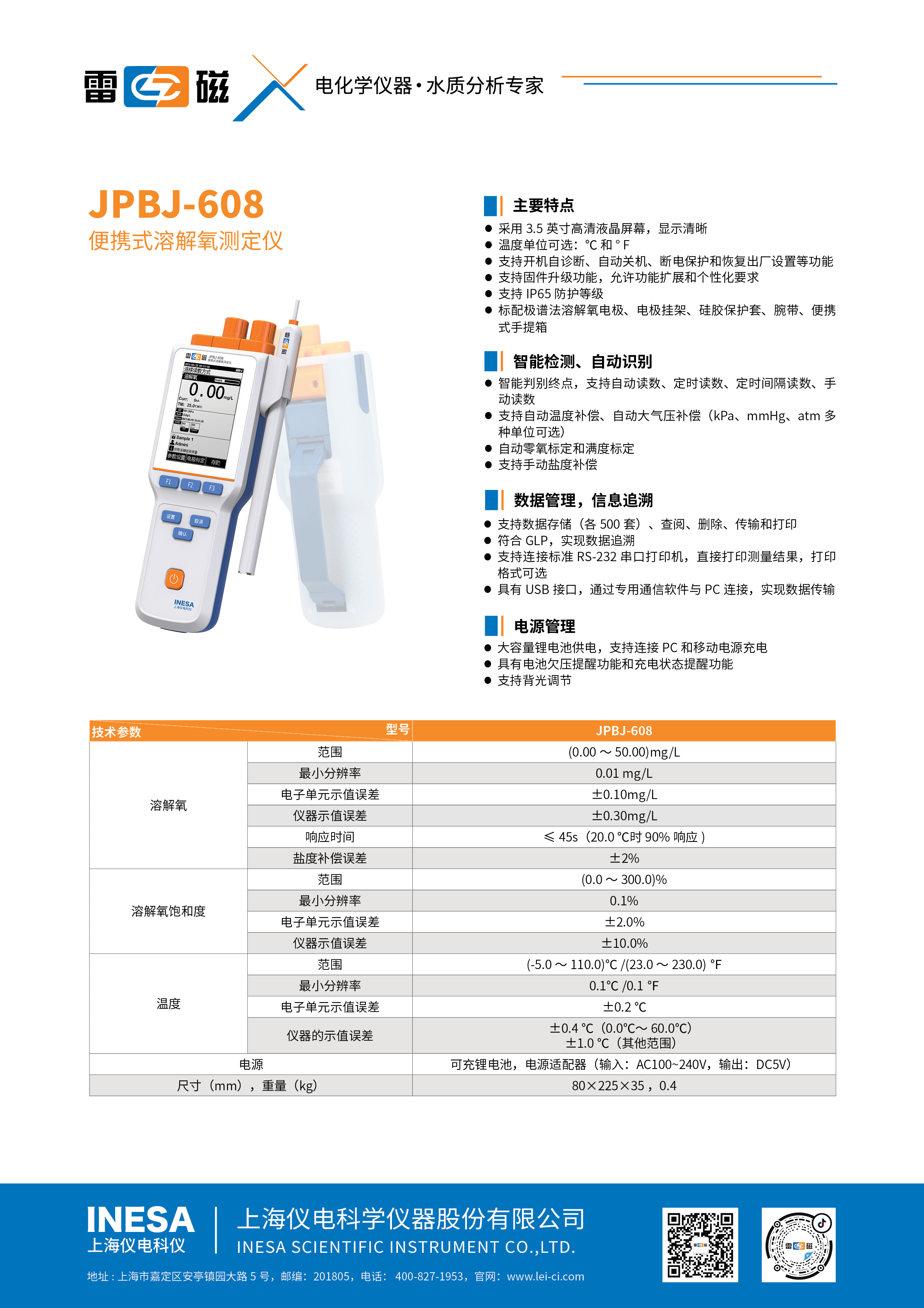 测量范围 | 溶解氧 | (0.00~19.99)mg/L |