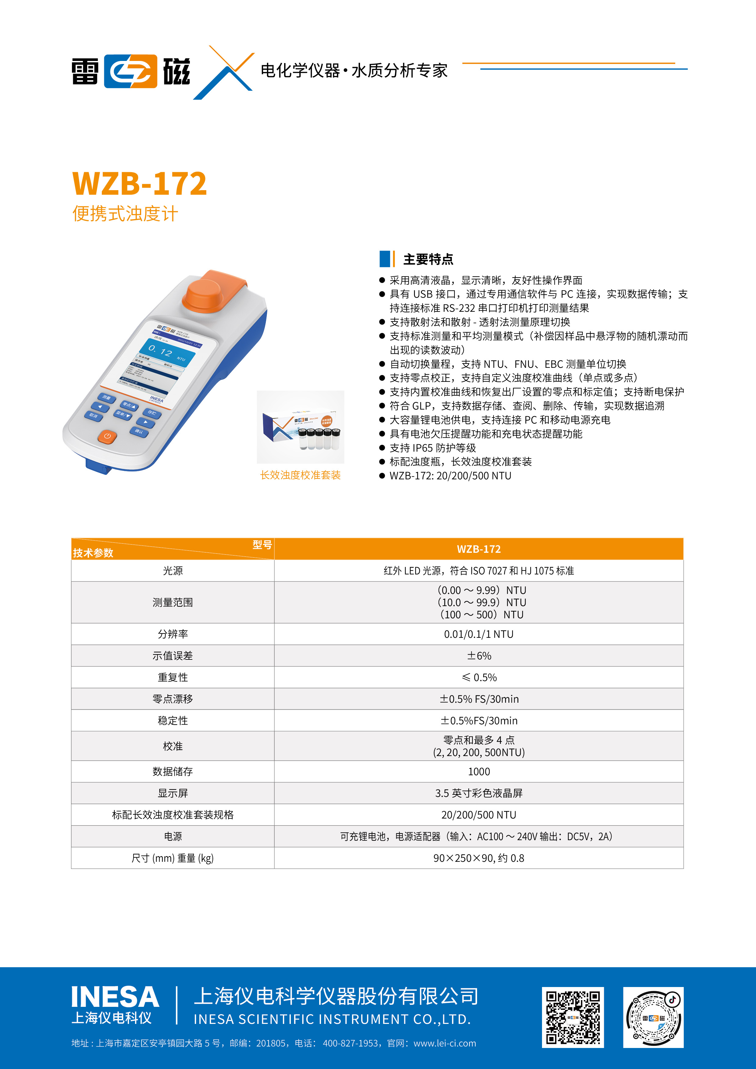 测量范围 | (0~20.00)NTU,(20.0~500.0)NTU |