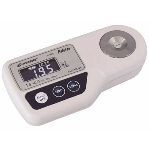 数字式盐度计采用漏斗型的感应部分(电导法),测量样本(如酱油、蕃茄酱、美乃滋、调味酱油与卤汁等的稀释液)的盐度%,且只需要非常少量的样本液体(大约10毫升即够测量)。