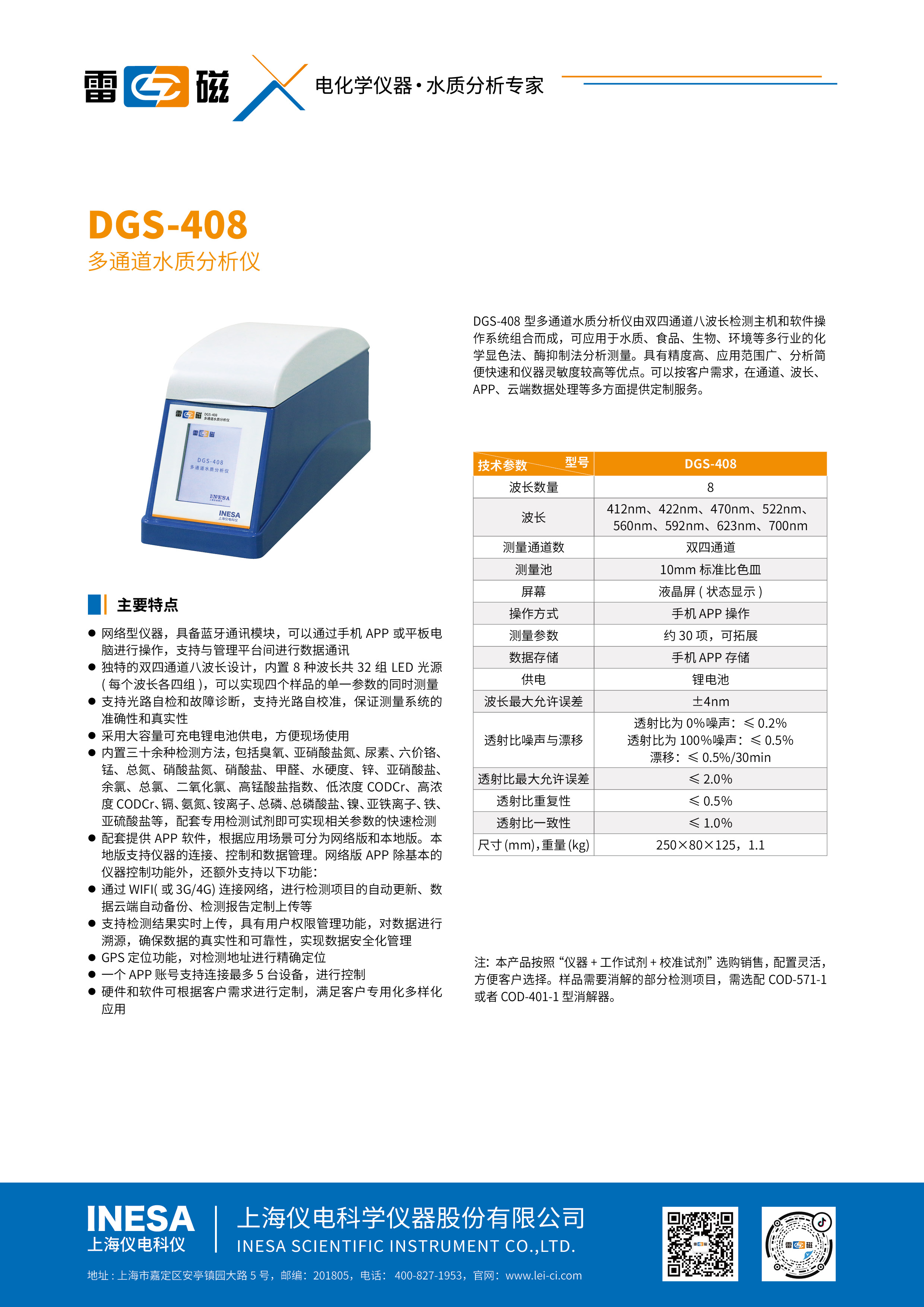 ●内置三十余种检测方法,配套专用检测试剂即可实现相关参数的快速检测