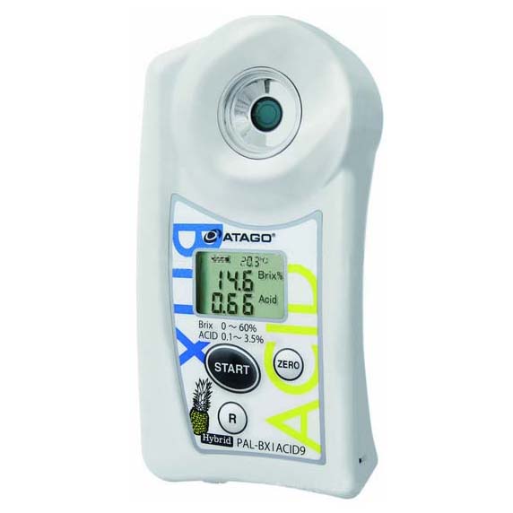 为了方便更多的农业、水果行业的客户快速检测糖酸比,提供更高的测量服务和更低的价格。让跟多的农业和水果行业客户认识到不仅仅需要检测糖度,还需要检测酸度,最合适的糖酸比才是评价水果的最好指标。ATAGO(爱拓)研发了这款新的糖酸一体机,不仅可以同时检测水果的糖酸比,而且不需要繁杂的操作方法和酸度测定试剂。PAL-BX/ACID 9(菠萝)糖酸一体机,菠萝糖酸比检测仪,菠萝糖酸度计,专门设计为测量菠萝糖酸度,带有OFFSET曲线修正功能,可用于对比修正滴定法结果或者其他读数单位产生的数值偏差,使测试结果同步一致。可以用来测量菠萝及菠萝制品的糖度和酸度含量。