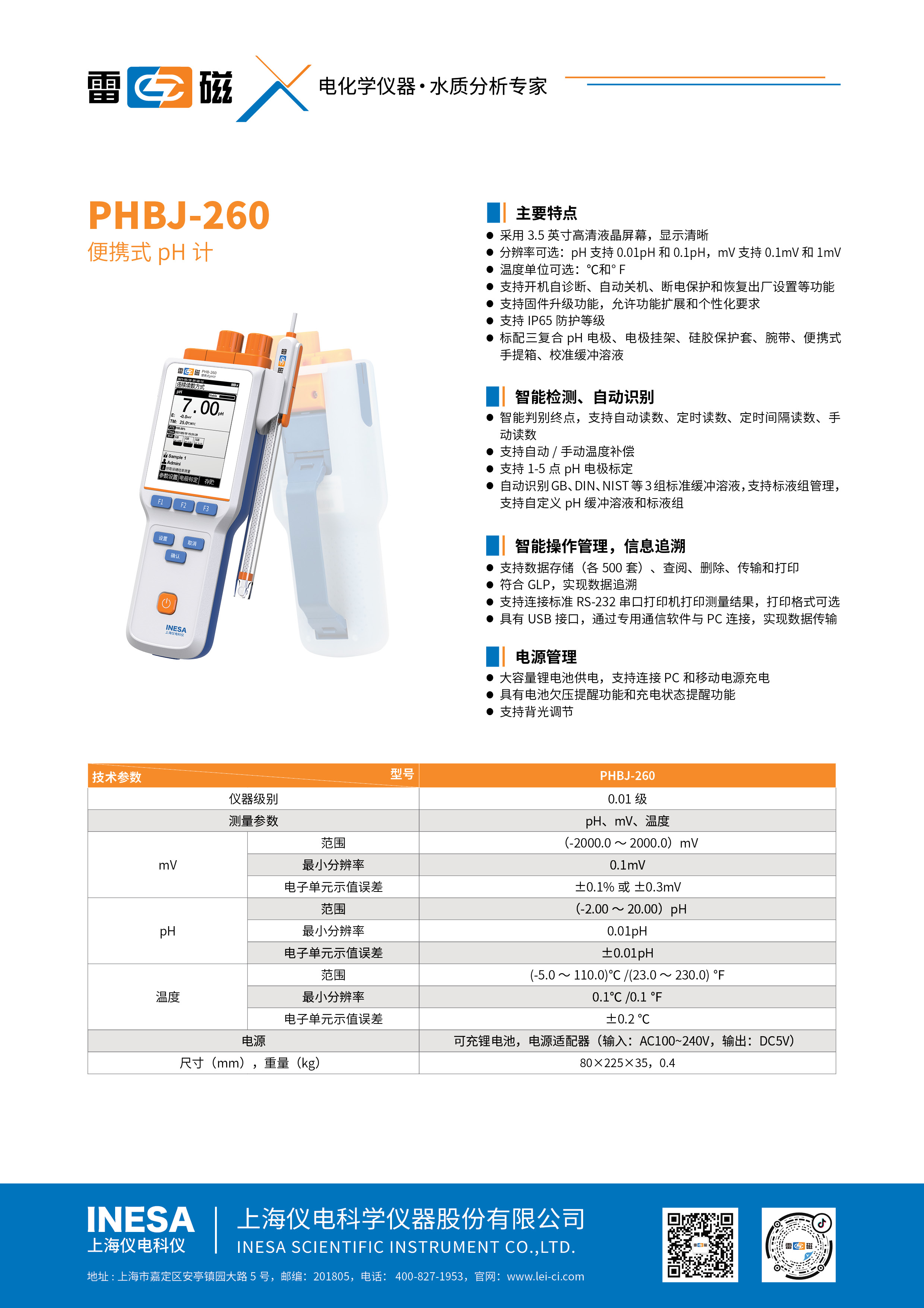 PHBJ-260型便携式pH计 |